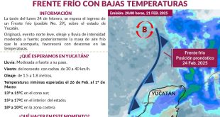 LEER MÁSContinuarán las bajas temperaturas en Yucatán