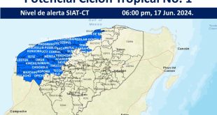 MÉRIDA, Yuc., 11 de junio 2024.- En las próximas 24 horas, se prevé cielo parcialmente nublado con probabilidad de chubascos y lluvias fuertes. Ambiente caluroso a muy caluroso en el día y cálido en la noche. Un canal de bajas presiones en la región y el ingreso de aire maritimo …