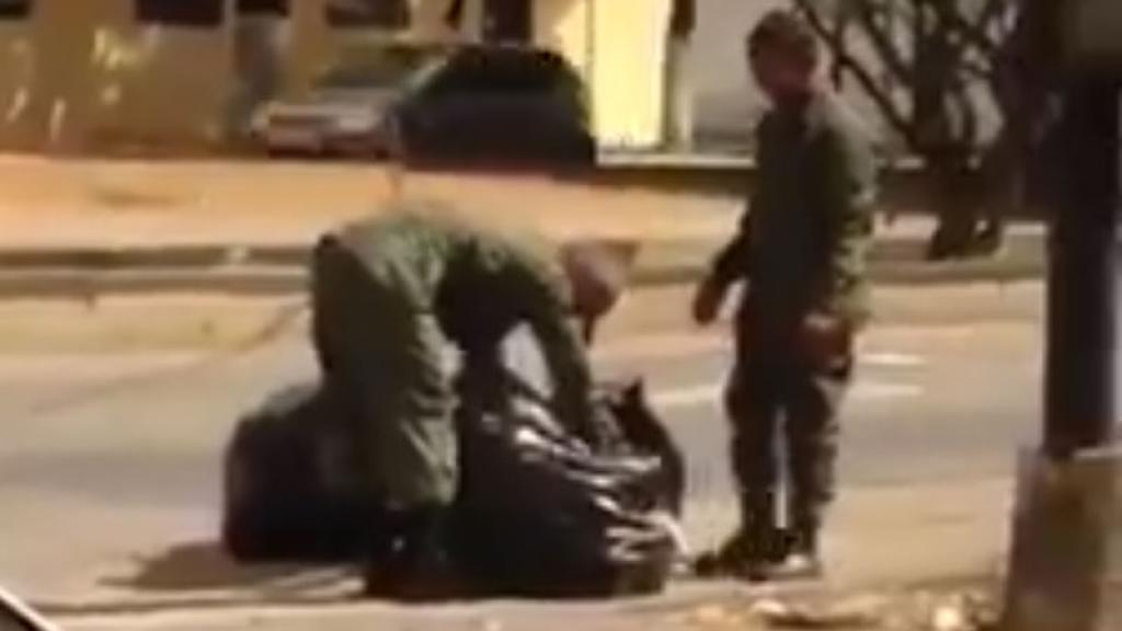 En redes sociales comenzaron a circular fuertes imágenes que muestran una vez más la terrible crisis por la que está pasando Venezuela. Y es que en un video, aparecen dos militares venezolanos escarbando entre bolsas de basura, aparentemente buscando algo para comer. “Dijo Maduro ayer como un fanfarrón: ‘A Venezuela …