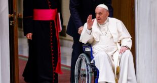 El papa Francisco utilizó hoy una silla de ruedas para llegar al aula Pablo VI del Vaticano para la XXII Asamblea Plenaria de la Unión Internacional de Superioras Generales (UISG) El papa Francisco utilizó hoy una silla de ruedas para llegar al aula Pablo VI del Vaticano para la XXII …