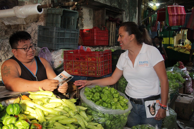 La candidata Zhazil Méndez hace campaña en el Lucas de Gálvez Decenas de vendedores de Kanasín aprovecharon la visita de la candidata Zhazil Méndez Hernández al mercado Lucas de Gálvez de Mérida para expresarle diversas inquietudes, entre ellas dejar cerrados sus domicilios más de 15 horas por trabajar en la …