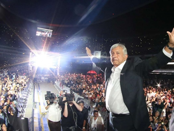 Con el grito de “presidente, presidente” de 80 mil almas que asistieron al Estadio Azteca, el candidato presidencial de la coalición Juntos Haremos historia, Andrés Manuel López Obrador, aseguró que la victoria del domingo se ha ido concretando con la abnegación de muchos, “no surge de repente, ni brota únicamente del malestar que provocó …