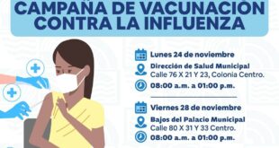 Progreso, Yucatán, 26 de noviembre de 2025.-El Ayuntamiento de Progreso invita a toda la población a participar en la Campaña de Vacunación contra la Influenza, realizada por la Dirección de Salud en coordinación con el Centro de Salud con Servicios Ampliados (CESSA). La jornada se llevará a cabo este viernes …