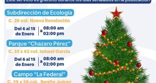 -El Ayuntamiento del puerto tendrá disponible esta campaña hasta el 15 de enero y contará con tres centros de acopio. Progreso, Yucatán, 6 de enero de 2025. Con el objetivo de promover un Progreso más limpio y ordenado, el alcalde Erik Rihani, a través de la Dirección de Gestión Integral …