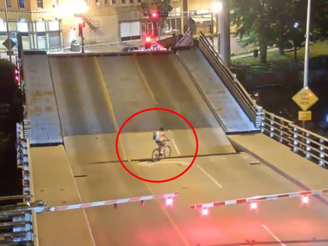 MENASHA. Una ciclista de Estados Unidos casi muere al caer en un hueco que se formó en un puente levadizo, justo cuando éste comienza a ascender para permitir el paso de tráfico de embarcaciones, de acuerdo con WBAY-TV. Imágenes captaron el suceso que ocurrió el 4 de julio después de los fuegos artificiales en Menasha, …