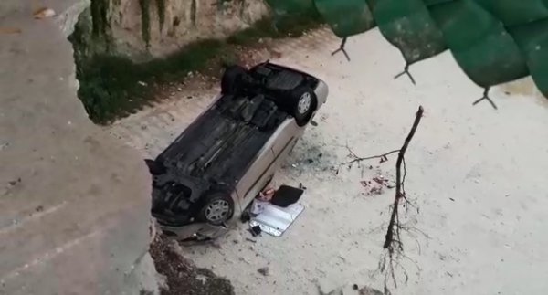 LEER MÁSCae 7 metros con todo y carro y sale ileso en Prolongación Montejo