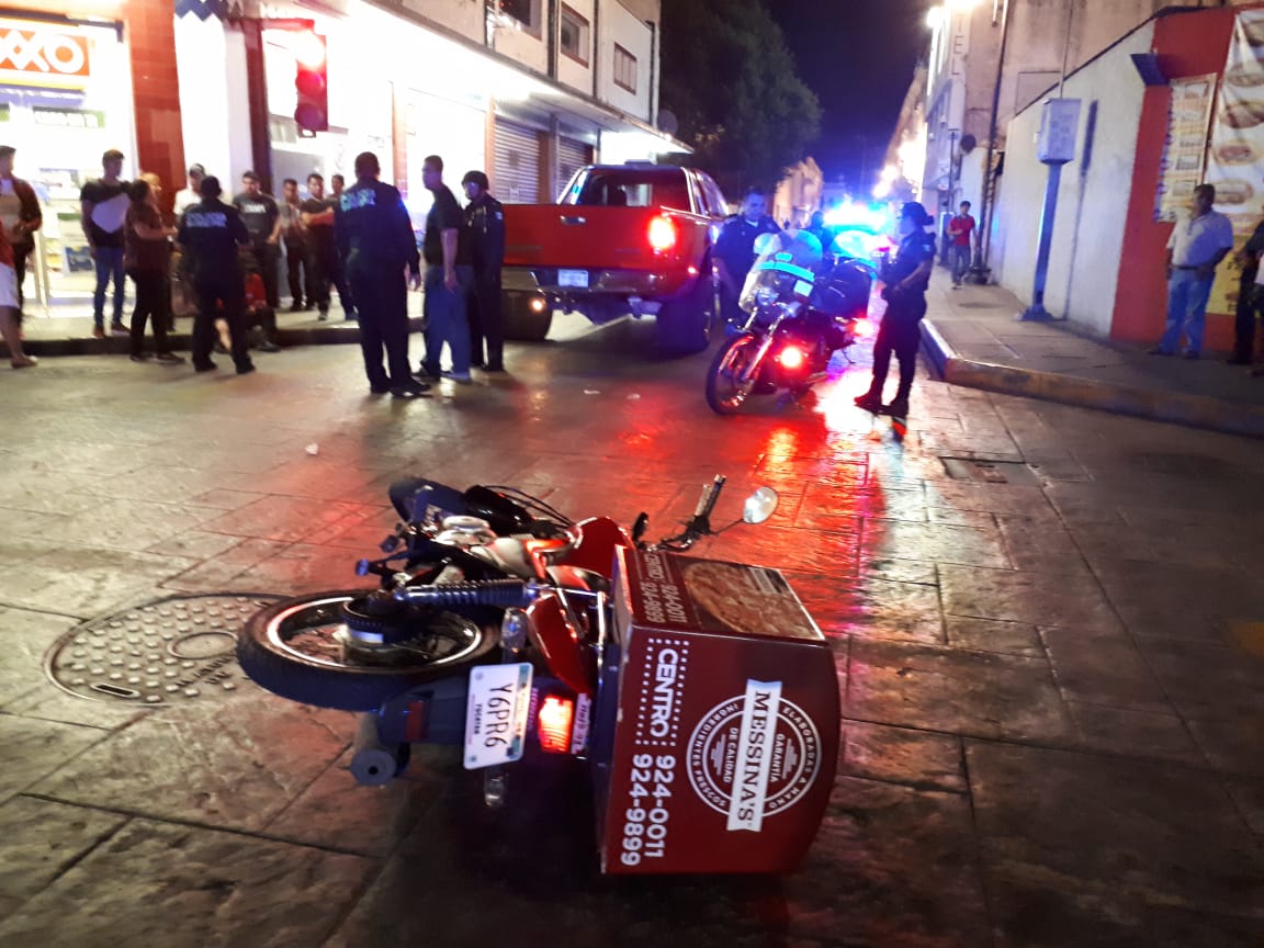 Un repartidor de pizza resultó lesionado luego de que el conductor de una camioneta tipo pic up, quien hablaba por teléfono, se pasó el alto en la esquina de la calle 63 con 64 del Centro de la ciudad de Mérida. El motociclista de nombre Edwin Jorge Baeza, señaló que …
