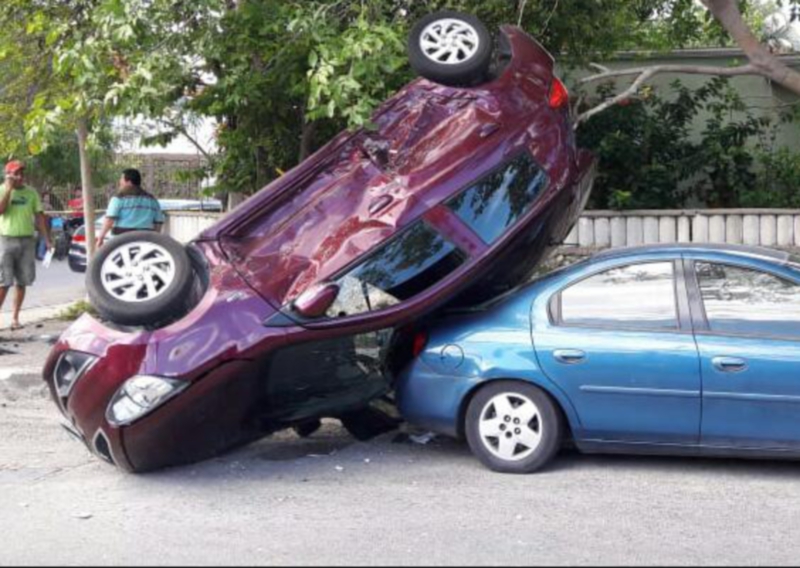 Espectacular accidente se registró ayer en la mañana en la colonia Emiliano Zapata Norte, en Mérida, donde el conductor de un auto Mitsubishi tipo Mirage no respetó el alto y terminó volcado sobre un vehículo estacionado. El saldo fue de dos heridos y cuantiosos daños. De acuerdo con los datos, …