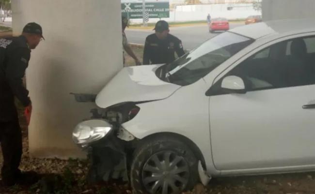 La imprudencia de un joven conductor derivó en un fuerte accidente de tránsito en la avenida Internacional, a la altura del aeropuerto, en la capital yucateca. Según se averiguó, Alexis Ibarra Torres, de 22 años, iba conduciendo un automóvil tipo Sentra por la mencionada avenida, en el sentido de norte …