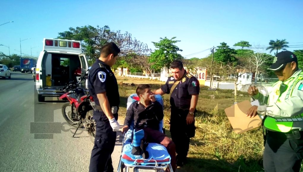Un motociclista metió su pie entre los rayos de la llanta de su vehículo, fracturándose la pierna. El joven conductor estaba bajando el puente de Chichí Suárez del periférico, cuando una de sus piernas se atoró en el rin. La motocileta, con placas 9HVA8, siguió su marcha a pesar de …
