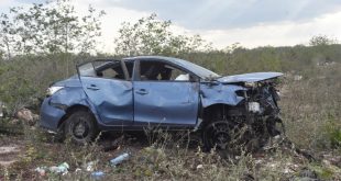 Federico Azul/ Yucatán al Instante Acanceh, Yuc., a 13 de marzo 2024.- Los cuatro ocupantes de un vehículo Yaris placas GPR–481–A del Estado de Guanajuato, corrieron con suerte luego de que el vehículo en que viajaban se salió de la carretera en el kilómetro 24 de la vía federal Mérida-Cancún …