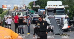 Federico Azul/ Yucatán al Instante Mérida, Yuc., a 14 de noviembre.- Como una escena sacada de la película de Destino Final, así se vivió esta mañana en el periférico norte de la capital yucateca, donde la carambola dejó como saldo una camioneta SUV volcada, una vigueta atravesada en el camión …