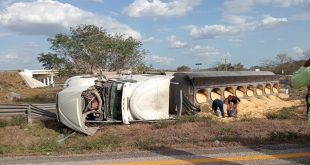 LEER MÁSTráiler cargado con 30 toneladas de alimento vuelca en entronque Mérida-Campeche