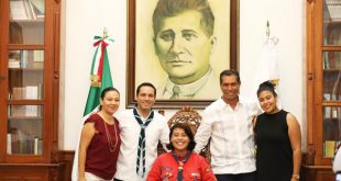 La estudiante yucateca obtuvo el reconocimiento por su proyecto “Mérida sin chafas”, orientado a concientizar sobre el grave problema que ocasiona la corrupción. Mérida, Yucatán, 14 de mayo de 2019.- El Gobernador Mauricio Vila Dosal recibió a la joven scout Andrea Josefina Sauma Vargas, quien obtuvo el nombramiento de Gobernadora …