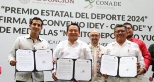 Con dicho acuerdo, se busca impulsar la infraestructura deportiva, brindar mayores apoyos a atletas y entrenadores, además de asegurar que el deporte sea un pilar de desarrollo para la sociedad. · Entregan Premio Estatal del Deporte y la Medalla de Oro al Mérito Deportivo Yucateco a Gilda Guadalupe Cota Vera …