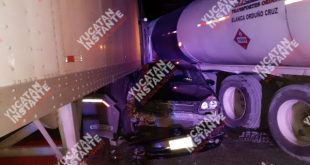 Corresponsalías/Yucatán al Instante Halachó, Yuc., 18 de noviembre de 2019.- Carlos Lizárraga, de 27 años, vivió para contarlo luego de que de que su vehículo fue chocado por un trailer, ocasionando que rebotara contra otra mole de acero y quedar prensado entre ambas pesadas unidades en la vía federal Mérida …
