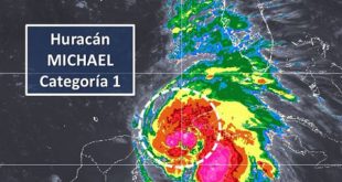 El Huracán Michael se ubica esta noche a 240 kms al noreste de Cancún, Quintana Roo, y registra vientos máximos sostenidos de 140 km/h y rachas de 165 km/h. Este sistema ha incrementado su velocidad de traslación a 19 km/h y se espera que en breve ya se desplace sobre …