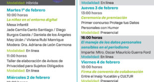 Mérida, Yucatán, 28 de enero de 2022.- En el marco del Día Internacional de la Protección de Datos Personales el Instituto Estatal de Transparencia, Acceso a la Información Pública y Protección de Datos Personales, (Inaip Yucatán) realizará del 31 de enero al 4 de febrero una jornada de actividades dirigidas …