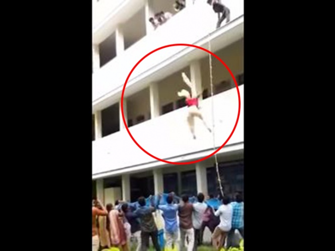 na tragedia sucedió ayer en la India. Una adolescente identificada como N. Lokeshwari, murió luego de que un instructor de su colegio la empujara desde un segundo piso, durante un simulacro. El acto fue grabado por otro de los estudiantes, y en la grabación se aprecia que la joven se mostraba indecisa a saltar, momentos después …