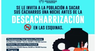 Invitan a ciudadanos a eliminar posibles criaderos de moscos que propagan enfermedades como el Dengue, Zika y Chikungunya Progreso, Yucatán a 13 de marzo de 2020. La Dirección de Salud del Ayuntamiento de Progreso, en coordinación con la Secretaria de Salud de Yucatán (SSY), informa a toda la población del …