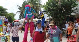 Progreso, Yucatán a 05 de noviembre de 2019. A fin de animar la bienvenida de cruceristas que semana a semana llegan al puerto, la Dirección de Turismo puso en marcha “El Carnavalito” con un grupo de artistas que comparten música y baile en el conocido tianguis de los artesanos. Manuel …