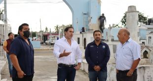Progreso, Yucatán a 24 de octubre de 2022. El alcalde Julián Zacarías Curi supervisó recientemente los trabajos de mantenimiento que se realizan en el cementerio de Progreso, esto de cara al Día de Muertos y Hanal Pixán. Durante la visita, acompañaron al edil el regidor de Servicios Públicos, Cementerios, Transporte …