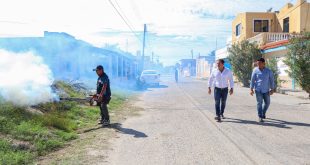 Progreso, Yuc., 21 de octubre 2023.- El alcalde Julián Zacarías Curi, en colaboración con el subdirector de Ecología, Augusto Navarrete, encabezó una inspección de las labores de fumigación en la calle 56, entre las calles 21 y 25, en la Colonia Ismael García. Esta iniciativa es parte del programa “Adiós …