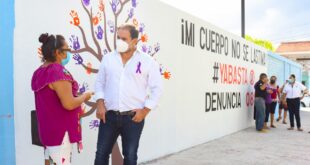Progreso, Yucatán a 23 de noviembre de 2021. Esta mañana, el alcalde Julián Zacarías Curi acudió al parque de la colonia Vicente Guerrero en donde el Instituto Municipal de la Mujer (IMM) de Progreso inició ayer sus actividades de la “Semana de la no violencia”, con la creación de un …