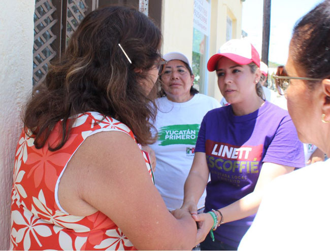 Acompañada de varias mujeres que se dieron cita en un tradicional restaurante yucateco, la candidata a diputada local por el V distrito, Linett Escoffié Ramírez, respondió a las inquietudes que éstas tenían en común sobre la perspectiva y capacidades de las mujeres, la prevención de la violencia contra ellas y …