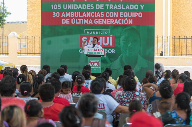 Por David Salazar Acanceh, Yucatán a 24 de mayo. El candidato del PRI, PVEM y Panal a la gubernatura de Yucatán, Mauricio Sahuí Rivero presentó una nueva propuesta para fortalecer el sector salud, la cual es la dotación de nuevas ambulancias equipadas a unidades médicas de primer y segundo nivel, …