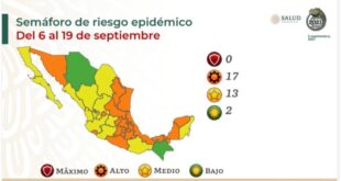 La Secretaría de Salud federal indicó los cambios que habrá para los próximos días en el semáforo epidémico de todos los estados; ninguno se encuentra en rojo CIUDAD DE MÉXICO.- La Secretaría de Salud federal indicó los cambios que habrá para los próximos días en el semáforo epidémico de todos los …
