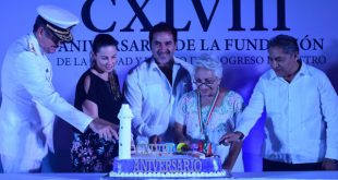 Autoridades municipales celebran un aniversario más del puerto Progreso, Yucatán a 02 de julio 2019. A través de una sesión solemne, celebrada anoche frente al Palacio Municipal, el alcalde Julián Zacarías Curi entregó la medalla y reconocimiento a la “Ciudadana Distinguida” de este año, la maestra de danza, Nuby Sevilla …