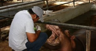 Mérida, Yucatán, 12 de enero de 2019. A fin de disminuir el estrés y los riesgos médicos que generan a los animales algunos procedimientos, como el recorte de colmillos o pezuñas o la toma de sangre, veterinarios y biólogos de los parques zoológicos Centenario y Animaya ya trabajan con el …