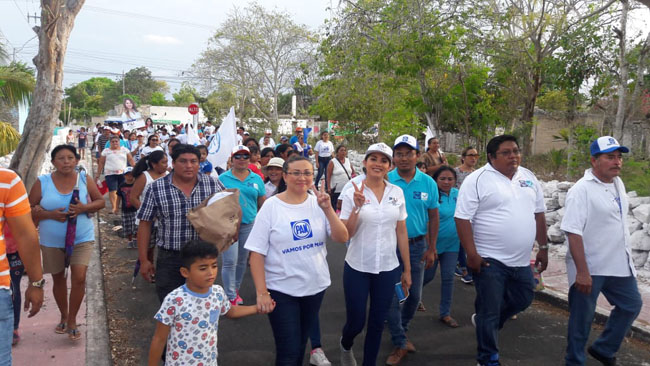 La candidata a diputada federal del PAN, PRD y Movimiento Ciudadano por el Distrito 2, Pili Santos Díaz, recorrió prácticamente toda la comunidad de Yobaín, junto con el candidato del PAN, Miguel Angel May Vera, quien busca la reelección como alcalde. En la animada caravana, los dos candidatos saludaron a …