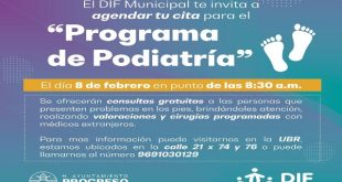 PROGRESO.- Médicos podíatras, provenientes de Miami y Seattle, realizarán su primera visita de este año, el sábado 17 de febrero para brindar atención a niños y adultos mayores que padecen algún tipo de problema en pies y tobillos, esto como parte del programa de ”Podiatría” que promueve el DIF municipal …