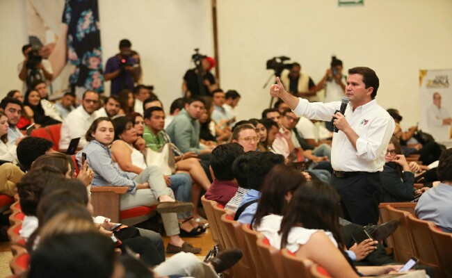 Sahuí en foro organizado por la Universidad Anáhuac Mayab Mérida, Yucatán- Los jóvenes de Yucatán van a ser pilar fundamental para detonar el desarrollo económico del estado, afirmó el candidato del PRI, PVEM y Panal a la gubernatura, Mauricio Sahuí Rivero, al participar en el foro organizado por la Universidad …