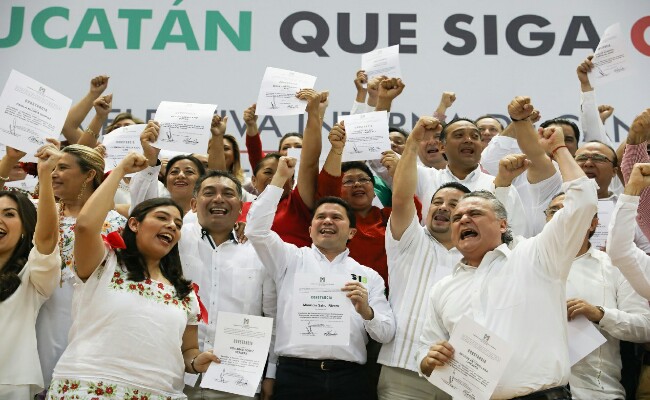 Ratifican a 106 aspirantes como candidatos a las alcaldías. Mérida, Yucatán.- Con el compromiso de cumplir la declaración de principios, los estatutos y el código de ética que rigen al partido, fue ratificado el candidato del PRI a la alcaldía de Mérida, Víctor Caballero Durán, durante la Jornada Electiva Interna …
