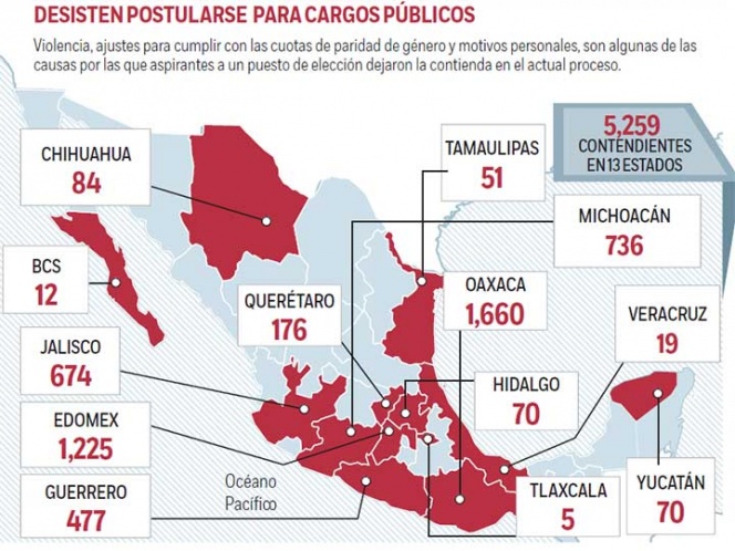 LEER MÁSSe bajan 5 mil 700 candidatos; inseguridad, entre las causas