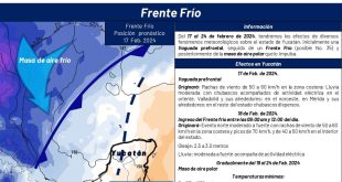 – Se espera una vaguada, seguida de frente frío y masa de aire polar a partir del próximo sábado 17 de febrero – Las temperaturas serán inferiores a 10 grados en el cono sur y de 11 a 15 grados en el interior del estado. – Atento llamado a la …