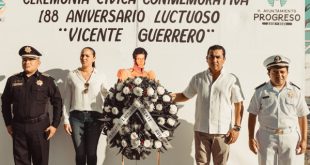 Progreso, Yucatán a 14 de febrero de 2019. Esta mañana autoridades municipales recordaron el 188 aniversario luctuoso de quien marcara el ámbito social, militar y político de la primera mitad del siglo XIX, Vicente Guerrero. Durante la conmemoración, realizada en el parque que también lleva el nombre del benemérito de …