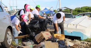 Progreso, Yucatán a 26 de octubre de 2019. Personal de la dirección de Desarrollo Social, a cargo de Dianela Núñez Castro, y de la empresa YZA se sumaron esta mañana para realizar una jornada de limpieza en el refugio pesquero La Caleta, durante ésta autoridades exhortaron a los voluntarios a …