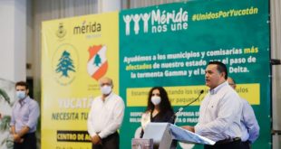 Mérida, 17 de noviembre de 2020. En una nueva muestra de solidaridad, el Ayuntamiento de Mérida, que encabeza el alcalde Renán Barrera Concha, recibió esta mañana una donación de paquetes alimentarios de manos del Club Libanés de Mérida y del Consulado Honorario del Líbano que se ofrecerán para apoyar a …
