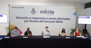 érida, 12 de octubre de 2020. En rueda de prensa que encabezó esta mañana, el alcalde Renán Barrera Concha dio a conocer un balance de las actividades realizadas hasta hoy para el apoyo de la población que resultó más afectada por las inundaciones causadas por las fuertes lluvias que han …