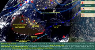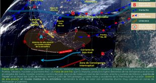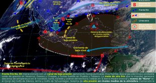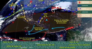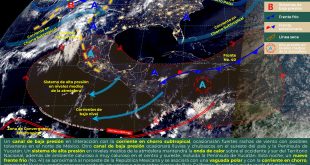 MÉRIDA, Yuc., 03 de marzo 2021.- En las próximas 24 horas, se prevé cielo medio nublado a nublado, con probabilidad de lloviznas con intervalos de chubascos. Temperaturas calurosas a muy calurosas durante día y cálidas en la noche. Se prevé que el frente frío No 39 permanezca como estacionario sobre …