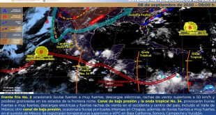 MÉRIDA, Yuc., 09 de septiembre 2020.- En las próximas 24 horas, se prevé cielo medio nublado a nublado, con probabilidad para chubascos acompañados de tormentas, con temperaturas calurosas a muy calurosas durante el día y cálidas al amanecer. Se prevé que el establecimiento de un canal de bajas presiones sobre …