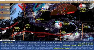 MÉRIDA, Yuc., 03 de septiembre 2020.- En las próximas 24 horas, se prevé cielo medio nublado a nublado, con probabilidad para lluvias, con temperaturas calurosas a muy calurosas durante el día y cálidas al amanecer. Nana tocó tierra a la 1 am como huracán cat.1 en las costas de Belice, …