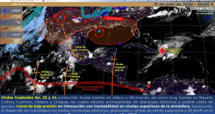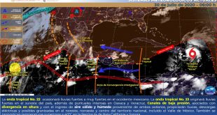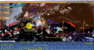 MÉRIDA, Yuc., 28 de julio 2020.- En las próximas 24 horas, se prevé cielo medio nublado con probabilidad de intervalo de chubascos con tormentas, con temperaturas calurosas a muy calurosas durante el día y cálidas al amanecer. El ingreso de aire marítimo tropical en combinación con el establecimiento de una …