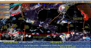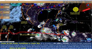 MÉRIDA, Yuc., 04 de agosto 2020.- En las próximas 24 horas, se prevé cielo medio nublado a nublado, con probabilidad de intervalo de chubascos y tormentas, con temperaturas calurosas a muy calurosas durante el día y cálidas al amanecer. Durante este día, el establecimiento de una vaguada en combinación con …