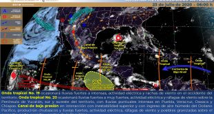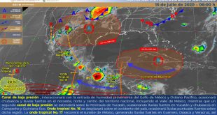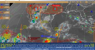 MÉRIDA, Yuc., 19 de julio 2020.- En las próximas 24 horas, se prevé cielo parcialmente nublado a medio nublado con probabilidad de intervalo de chubascos y tormentas, con temperaturas calurosas a muy calurosas durante el día y cálidas al amanecer. La onda tropical No. 18 y la vaguada en el …