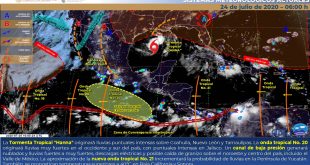 MÉRIDA, Yuc., 24 de julio 2020.- En las próximas 24 horas, se prevé cielo parcialmente nublado a medio nublado con probabilidad de intervalo de chubascos con tormentas, con temperaturas calurosas a muy calurosas durante el día y cálidas al amanecer. Una vaguada y la aproximación de la onda tropical no. …